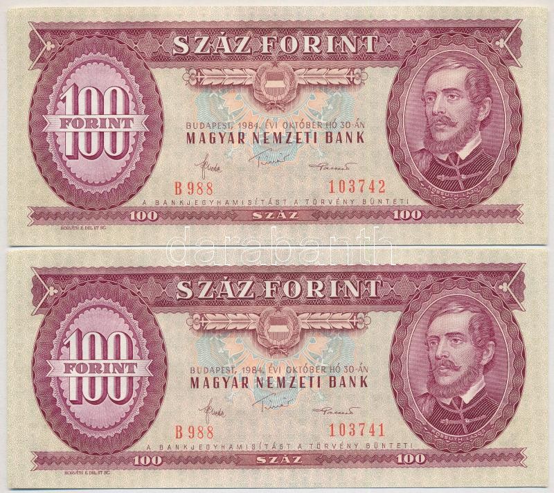 1984. 100Ft (2x) sorszámkövetők T:I-
