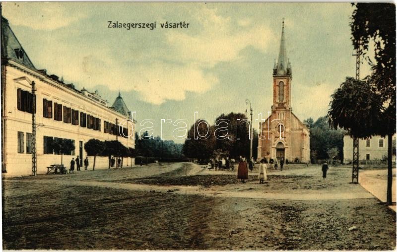 Leírás: 1913 Zalaegerszeg, Vásártér, M. kir. csendőr laktanya, Evangélikus templom. Kiadja Fülöp János