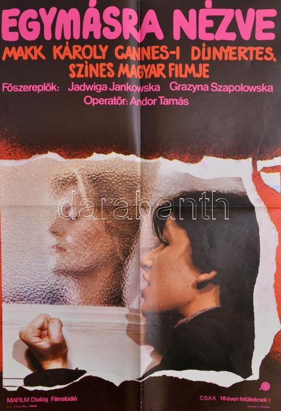 1982 Egymásra nézve, Makk Károly filmje, plakát, hajtott, 58×40 cm https://www.darabanth.com/hu/346-Gyorsarveres/346.0/Plakat/Plakat~500030/1982-Egymasra-nezve-Makk-Karoly-filmje-plakat-hajtott-58C39740-cm~II1963393
