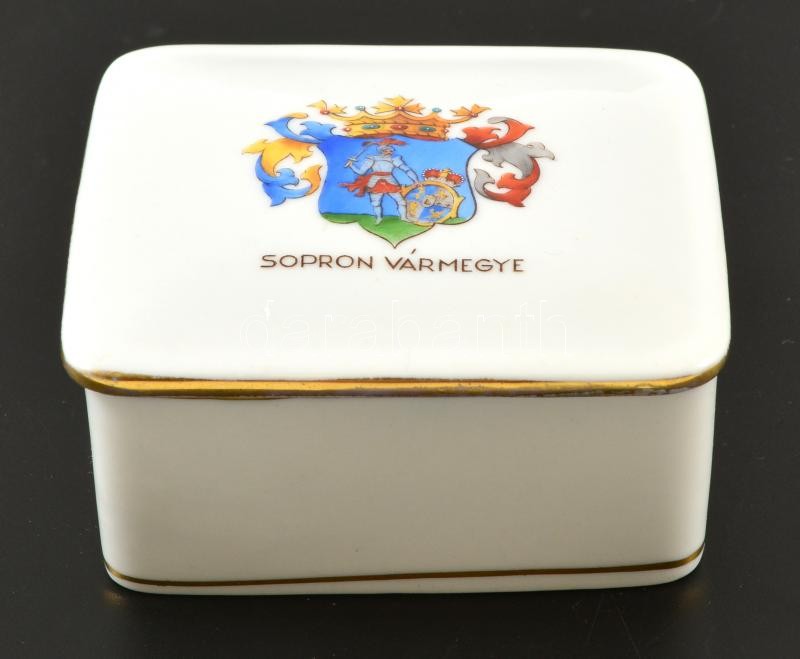Leírás: Herendi bonbonier Sopron vármegye címerével, kézzel festett, jelzett, apró kopásokkal, m: 9×8,5×4 cm
