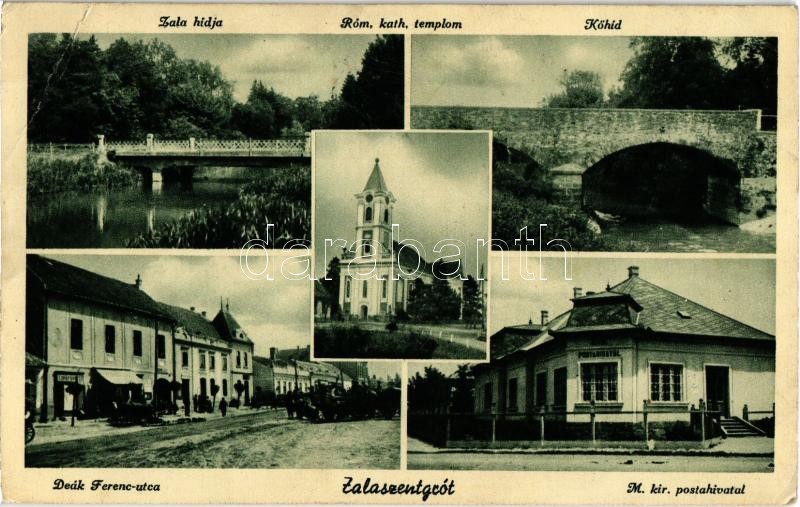 Zalaszentgrót, Zala hídja, Deák Ferenc utca, M. kir Postahivatal, Róma... https://www.darabanth.com/hu/347-Gyorsarveres/347.0/Kepeslapok/Magyarorszag~2500005/Zalaszentgrot-Zala-hidja-Deak-Ferenc-utca-M-kir-Postahivatal-Romai-katolikus-templom-KohC3~II1968338