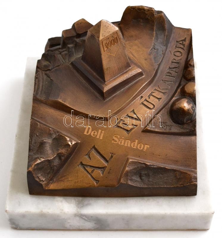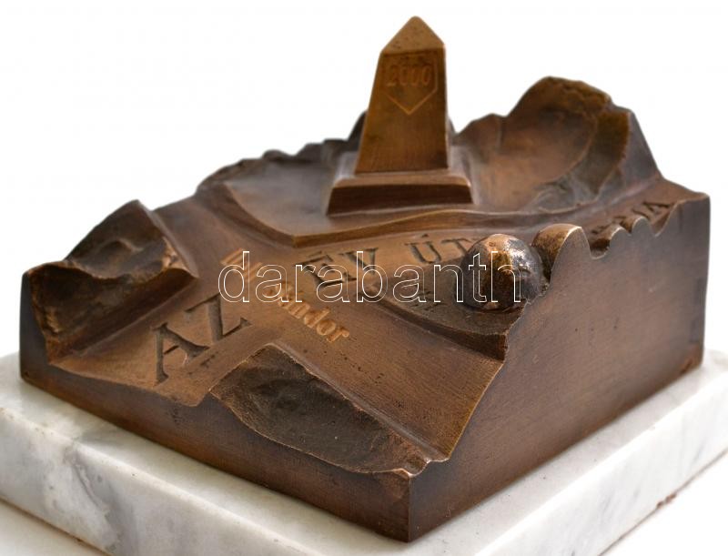 Leírás: "Az év útkaparója" díj, réz kisplasztika, alabástrom talapzaton, m: 9 cm