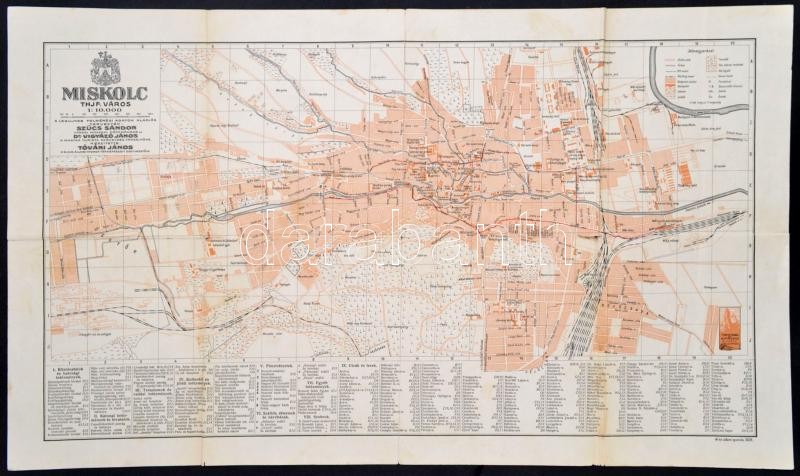 1928 Miskolc thjf. város térképe, 1:100.00, terv. Szűcs Sándor, Dr. Vi...