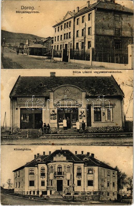Dorog, Bánya nagyiroda, községháza, Bálya László vegyeskereskedése, Cs... https://www.darabanth.com/hu/350-Gyorsarveres/350.0/Kepeslapok/Magyarorszag~2500005/Dorog-Banya-nagyiroda-kozseghaza-Balya-Laszlo-vegyeskereskedese-Csoban-Emil-uzlete~II1991943