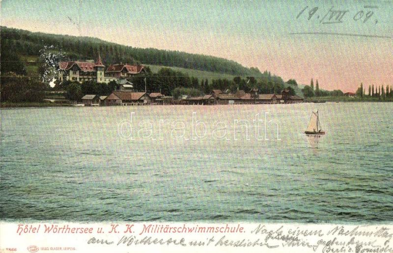 Leírás: Wörthersee, Hotel Wörthersee und K.u.K. Militär-Schwimmschule / K.u.K. military swimming school. Louis Glaser (Rb)
