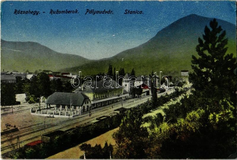 1918 Rózsahegy, Ruzomberok; Stanica / Pályaudvar, vasútállomás, vagono... https://www.darabanth.com/hu/352-Gyorsarveres/352.0/Kepeslapok/Felvidek~1000006/1918-Rozsahegy-Ruzomberok-Stanica-Palyaudvar-vasutallomas-vagonok-Kiadja-Valuch-Janos-~II2006928