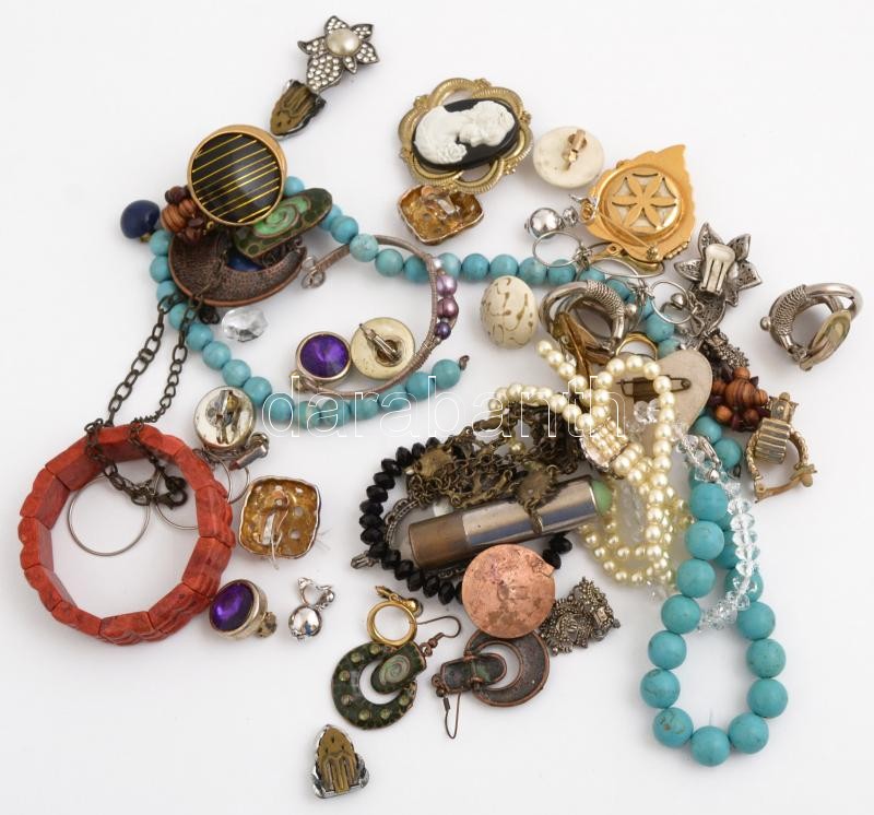 Vegyes bizsu tétel, nyakláncok, brossok, stb., 33 db https://www.darabanth.com/hu/352-Gyorsarveres/352.0/Mutargy-papirregiseg-egyeb/Bolhapiac~500011/Vegyes-bizsu-tetel-nyaklancok-brossok-stb-33-db~II1981653
