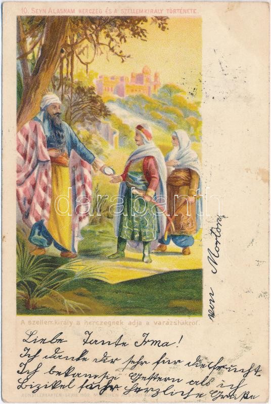 1902 Az Ezeregyéjszaka meséi: 10. Seyn Alasnam herceg és a szellemkirály története / One Thousand and One Nights / Künstlerkarten Serie Nr. 1102 Märchen aus 1001 Nacht. litho s: Mackott