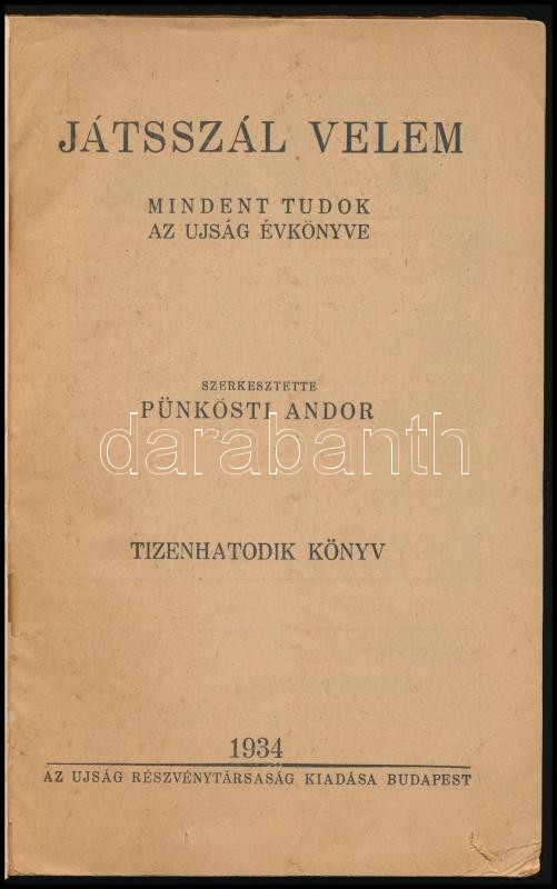 Játsszál velem. Szerk.: Pünkösti Andor. Bp., 1934, Az Újság Rt. Számos... https://www.darabanth.com/hu/353-Gyorsarveres/353.0/Konyvek/Konyvek-Egyeb-ritkasagok~2000018/Jatsszal-velem-Szerk-Punkosti-Andor-Bp-1934-Az-Ujsag-Rt-Szamos-fenykeppel-erdekes~II2016382