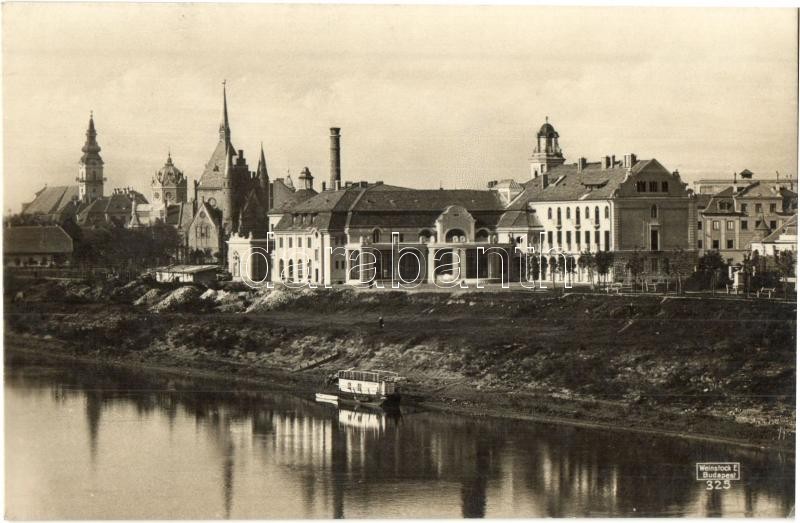 Leírás: Szolnok, Tiszaparti részlet a Tisza szállodával, izraelita templom, zsinagóga. Kiadja Nerfeldbank műszerosztálya