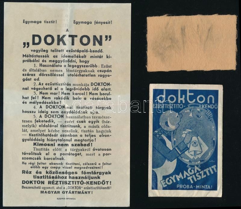cca 1930 Dokton ezüsttisztító kendő próba-mintadarab reklámleírással, ... https://www.darabanth.com/hu/355-Gyorsarveres/355.0/Mutargy-papirregiseg-egyeb/Reklam~500021/cca-1930-Dokton-ezusttisztito-kendo-proba-mintadarab-reklamleirassal-grafikus-diszitesu~II2031080