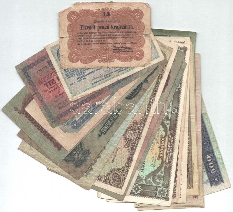 Leírás: 1849-1990. 23db-os vegyes magyar bankjegy tétel, közte 1849. 15kr "Kossuth bankó"; 1990. 500Ft T:III-IV