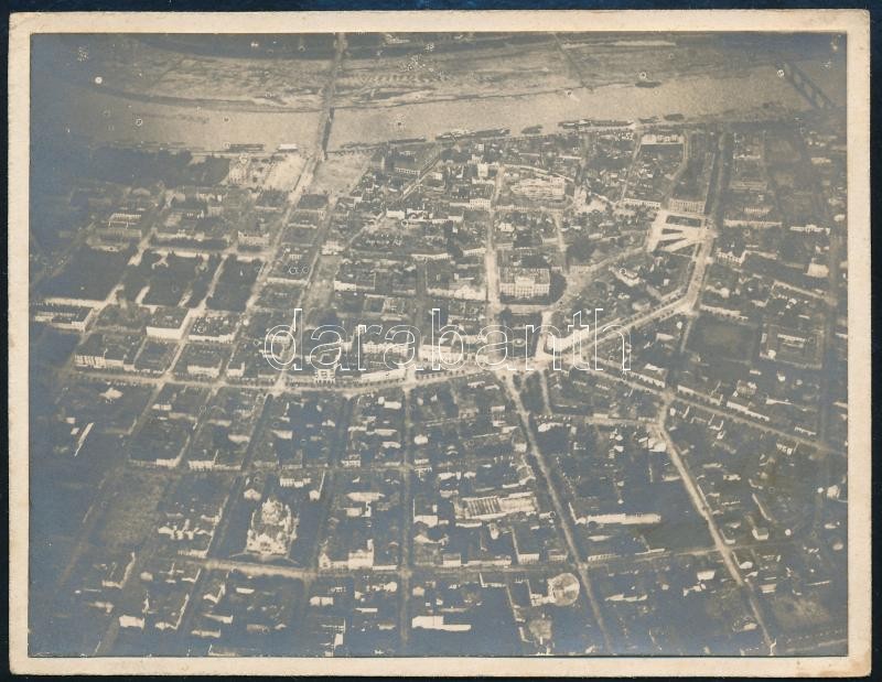 Leírás: cca 1920 Szeged belső részét megmutató légi fotó, 8×10,5 cm