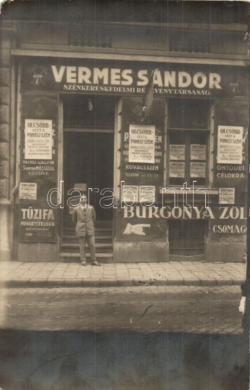 Budapest VII. Csengery utca 1. Vermes Sándor szénkereskedő üzlete. pho... https://www.darabanth.com/hu/362-Gyorsarveres/362.0/Kepeslapok/Magyarorszag~1000005/Budapest-VII-Csengery-utca-1-Vermes-Sandor-szenkereskedo-uzlete-photo~II1933555