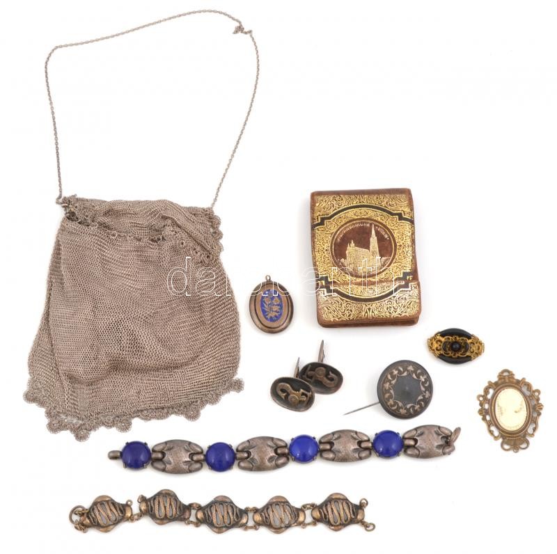 Régiségek (bizsuk, színházi táska (fém), összesen: 9 db https://www.darabanth.com/hu/362-Gyorsarveres/362.0/Mutargy-papirregiseg-egyeb/Bolhapiac~500011/Regisegek-bizsuk-szinhazi-taska-fem-osszesen-9-db~II2092440