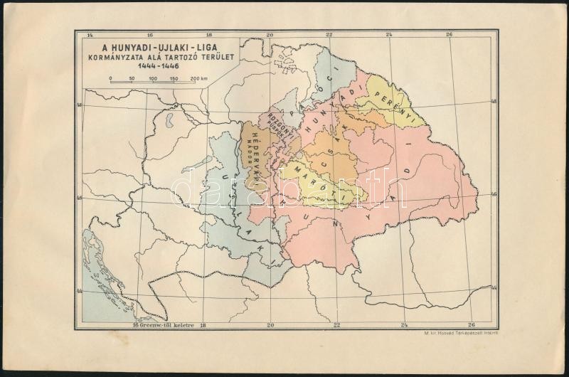 cca 1930-1940 A Hunyadi - Ujlaki - Liga kormányzata alá tartozó terület 1444-1446. Magyar Királyi Honvéd Térképészeti Intézet, foltos, 23,5x15,5 cm