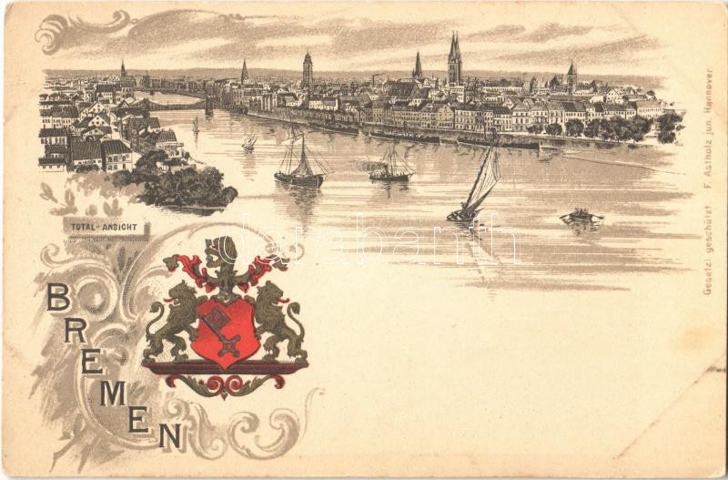 Leírás: Bremen, Total-Ansicht. F. Astholz Art Nouveau, coat of arms, litho