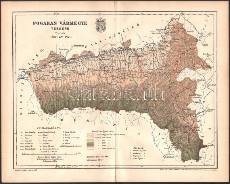 1894 Fogaras vármegye térképe, rajzolta: Gönczy Pál, kiadja: Posner Ká...