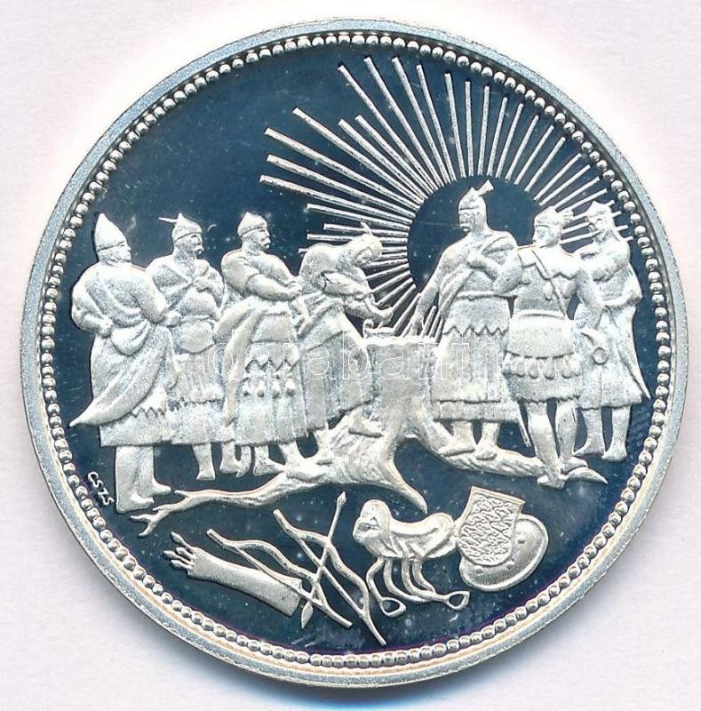 Csóka Zsuzsanna (1962-) 1996. "Millecentenárium Honfoglalás 896-1996" jelzett Ag emlékérem dísztokban, tanúsítvánnyal (11,90g/0.925/35mm) T:PP ujjlenyomat