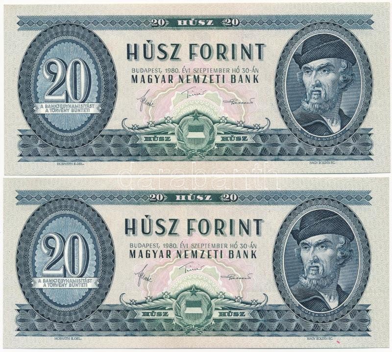 1980. 20Ft (2x) sorszámkövetők, nyomdai papírráncokkal T:I