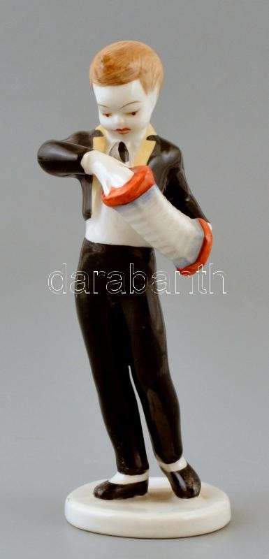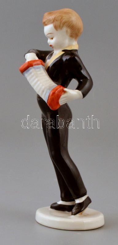 Leírás: Hollóházi harmonikázó kisfiú, kézzel festett, hibátlan, jelzett, m: 14 cm