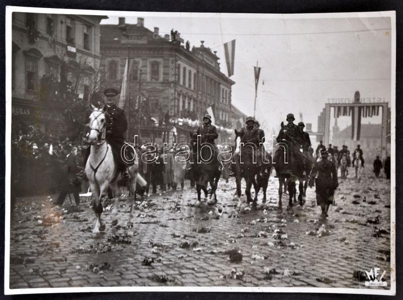 Leírás: 1938 Horthy Miklós bevonul Kassára, MFI fotó, törésnyomokkal, 12x17 cm