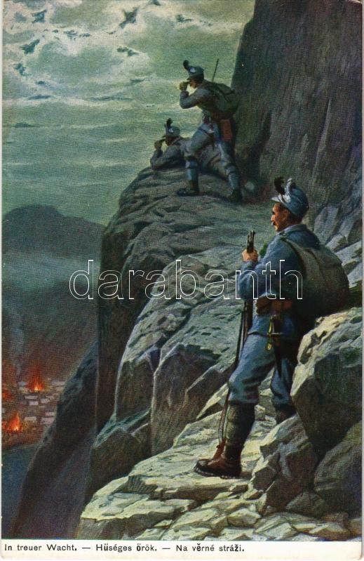 In treuer Wacht / Hűséges őrök / Na verné strázi / WWI Austro-Hungarian K.u.K. military, mountain troops, watchmen. G.G.W. II. Nr. 127.