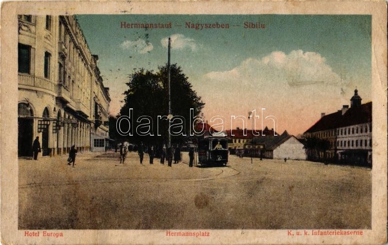 Nagyszeben, Hermannstadt, Sibiu; villamos, szálloda / hotel, tram (EK...