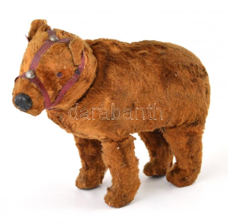 Leírás: Régi felhúzható mackójáték, kulcs nélkül, sérült, 15x9 cm