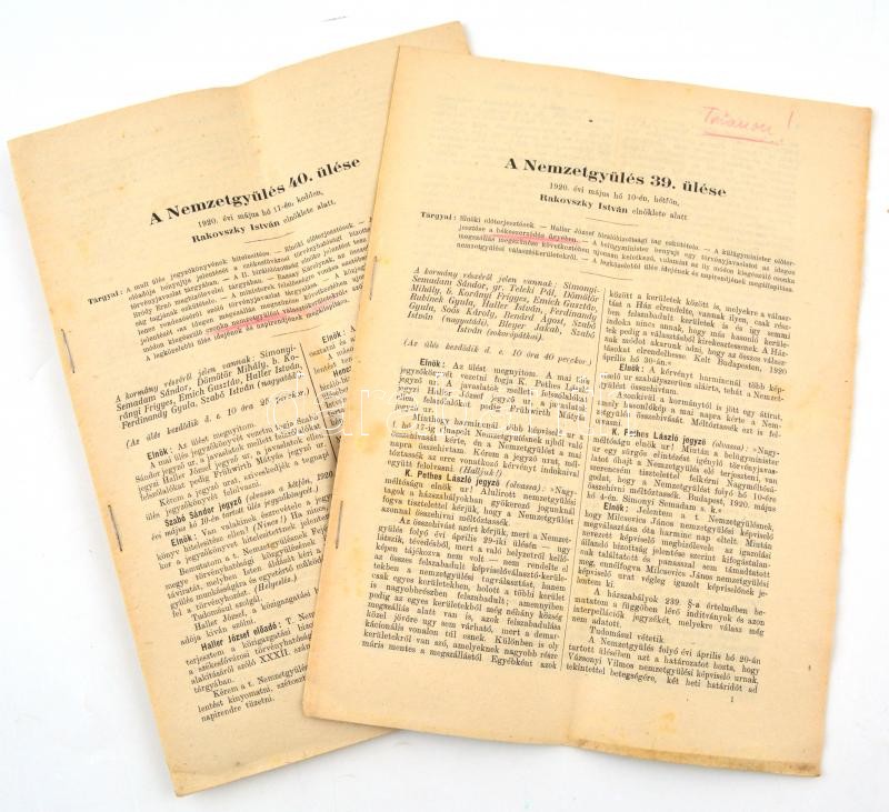 1920 A Nemzetgyűlés 39. és 40. ülésének nyomtatott jegyzőkönyve https://www.darabanth.com/hu/367-Gyorsarveres/367.0/Mutargy-papirregiseg-egyeb/Nyomtatvanyok~31/1920-A-Nemzetgyules-39-es-40-ulesenek-nyomtatott-jegyzokonyve~II2129383