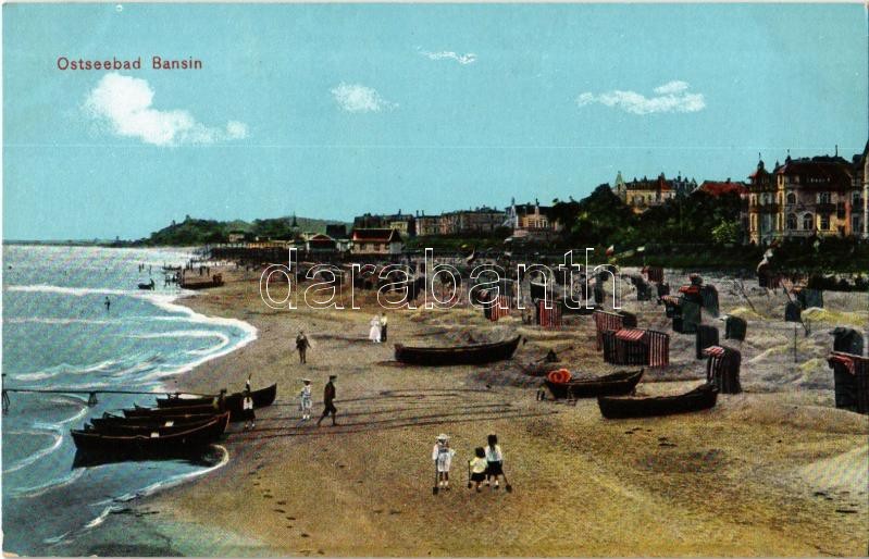 Bansin (Heringsdorf), Ostseebad / beach, boats, children. Julius Simon...