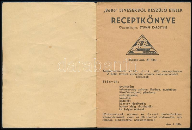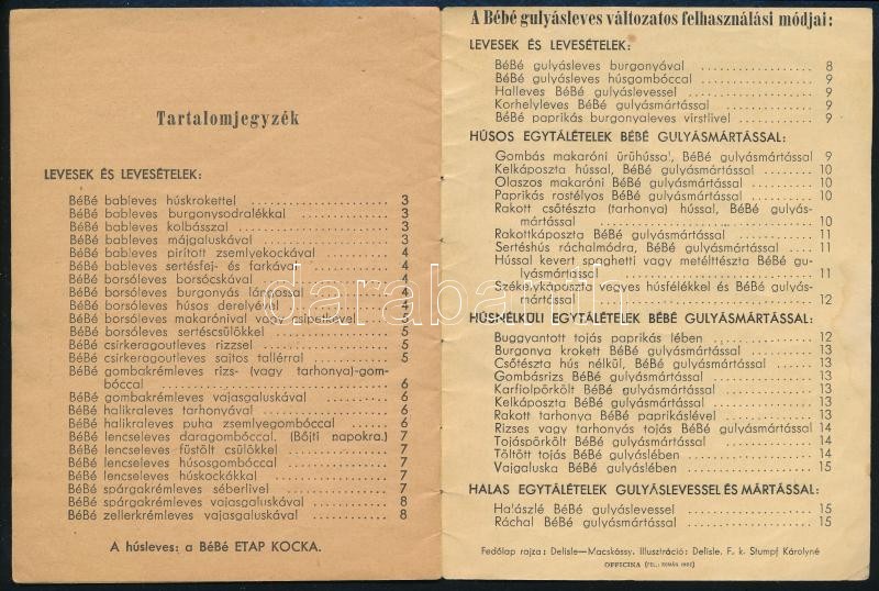 Stumpf Károlyné: "BéBé" levesekből készülő ételek receptkönyve. Bp., O... https://www.darabanth.com/hu/369-Gyorsarveres/369.0/Konyvek/Konyvek-Konyha-es-kert~1000007/Stumpf-Karolyne-BeBe-levesekbol-keszulo-etelek-receptkonyve-Bp-Officina-Kiadoi-pap~II2145145
