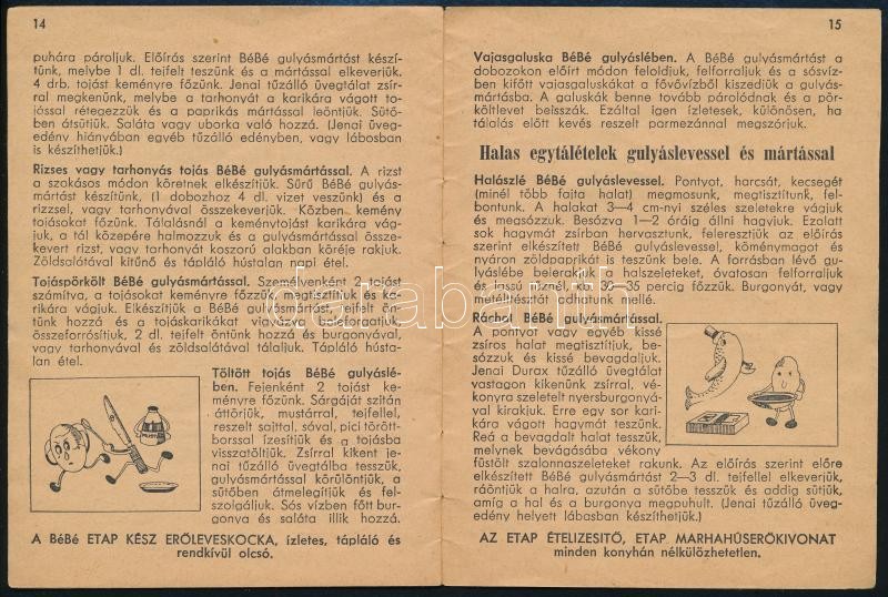 Leírás: Stumpf Károlyné: "BéBé" levesekből készülő ételek receptkönyve. Bp., Officina. Kiadói papírkötés, jó állapotban.