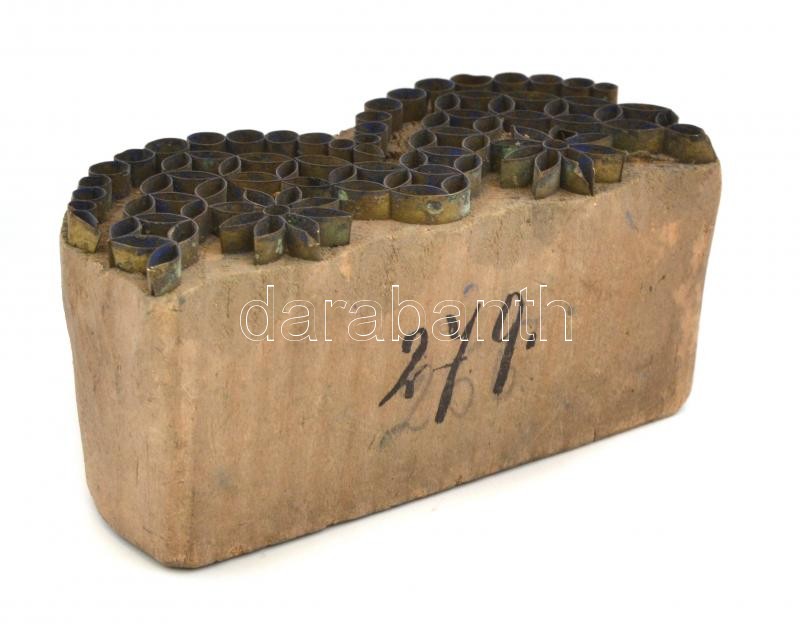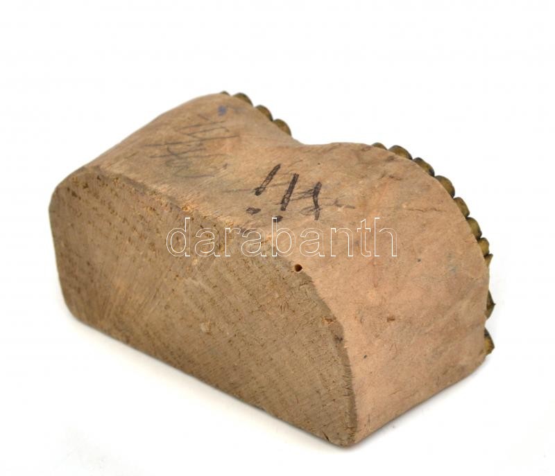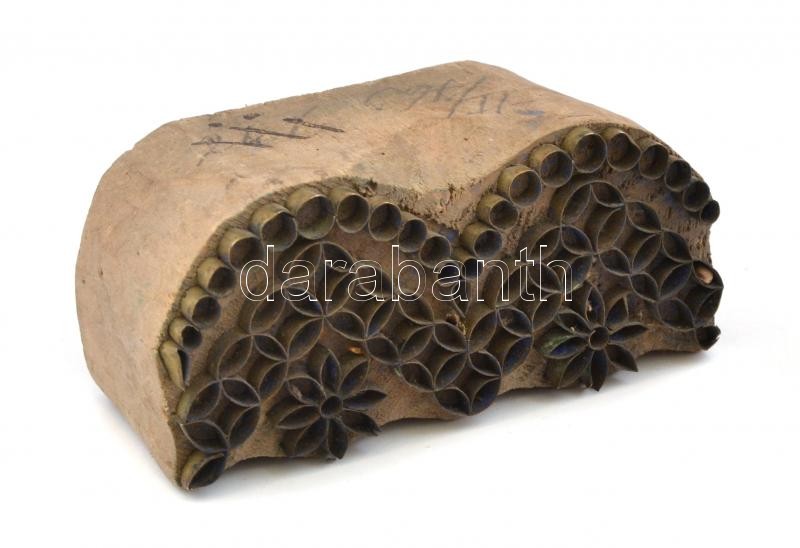 Leírás: Kékfestő minta. Fa, fém. 10x5 cm