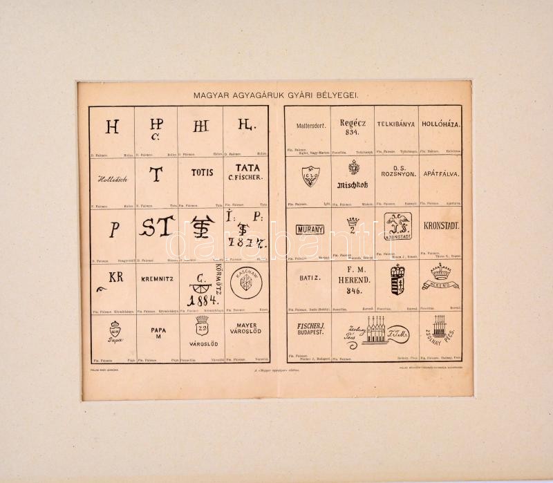 cca 1900 Magyar agyagáruk gyári bélyegei, Pallas Nagy Lexikona, Bp., Pallas, paszpartuban, 22x28 cm
