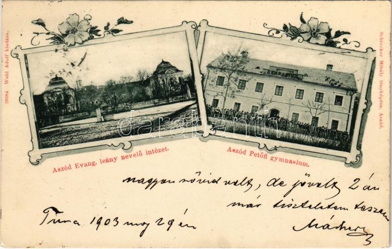 1903 Aszód, Evangélikus leánynevelő intézet, Petőfi gimnázium. Schreck... https://www.darabanth.com/hu/370-Gyorsarveres/370.0/Kepeslapok/Magyarorszag~1500004/1903-Aszod-Evangelikus-leanynevelo-intezet-Petofi-gimnazium-Schrecker-Mihaly-fenykepes~II2155119