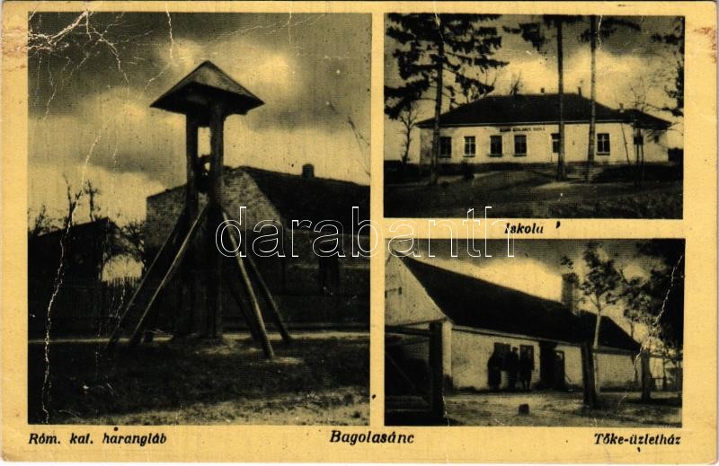 Bagola, Bagolya, Bagolasánc (Nagykanizsa); Római katolikus harangláb, iskola, Tőke üzletház (gyűrődések / creases)