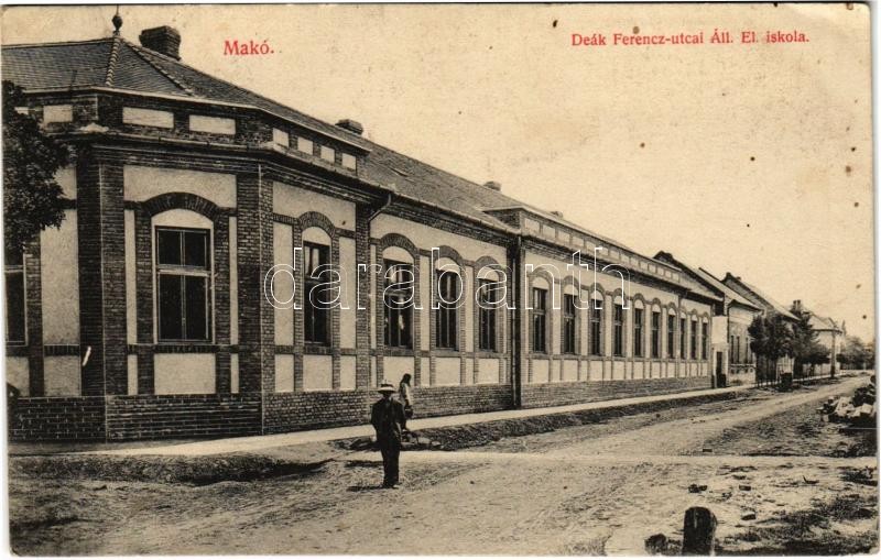 Leírás: 1917 Makó, Deák Ferenc utcai állami elemi iskola. Gaál László 1418. (EK)
