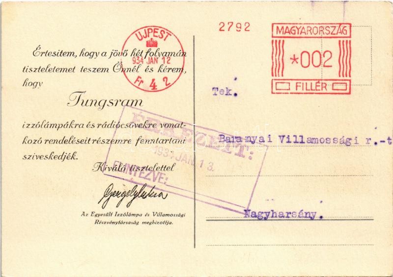 1934 Budapest IV. Újpest, Tungsram gyár (Egyesült Izzólámpa és Villamo... https://www.darabanth.com/hu/371-Gyorsarveres/371.0/Kepeslapok/Magyarorszag~1500005/1934-Budapest-IV-Ujpest-Tungsram-gyar-Egyesult-Izzolampa-es-Villamossagi-Rt-villamos-s~II2162243