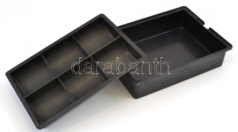 Leírás: Bakelit kassza betét, 2 külön darabból álló, aprópénznek és bankjegyeknek, km 9279 jelzéssel, enyhén kopott, 6,5x21x28 cm