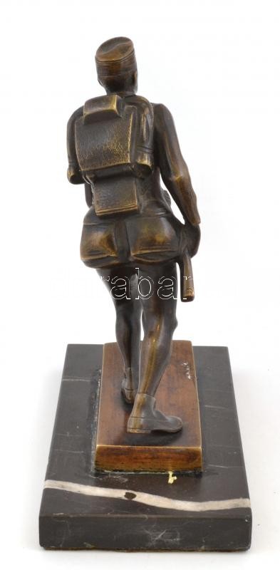 Leírás: Jelzés nélkül: I. világháborús katona bronz szobra, márvány talapzaton. Lejár a talapzatról 27 cm