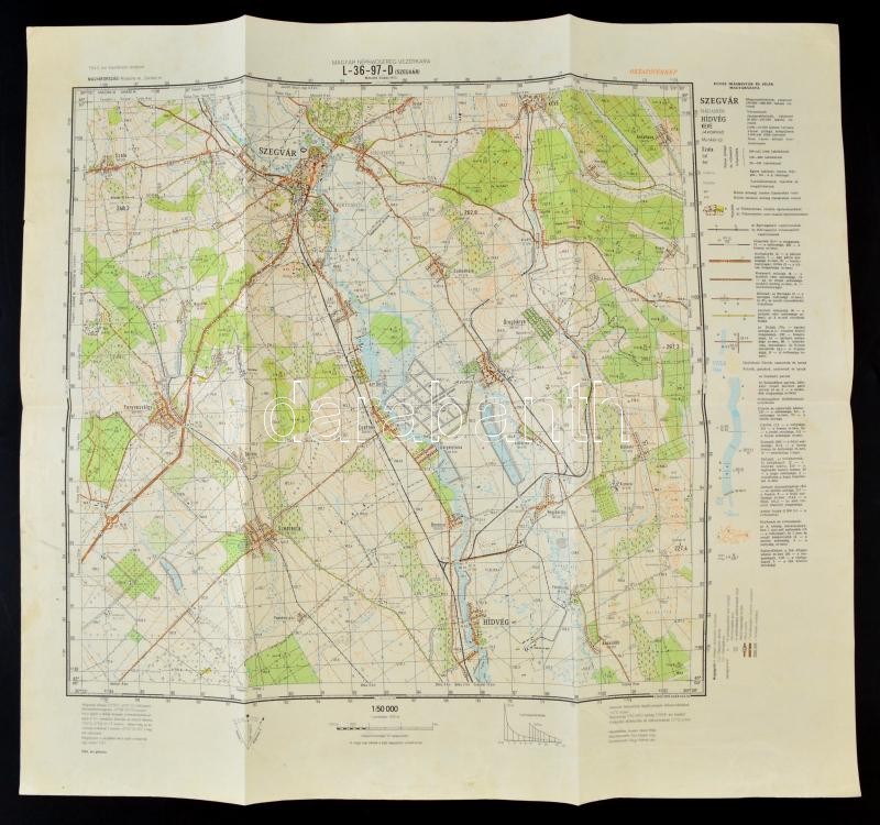 Leírás: 1970 Szegvár L-36-97-D katonai térkép, 48×53 cm