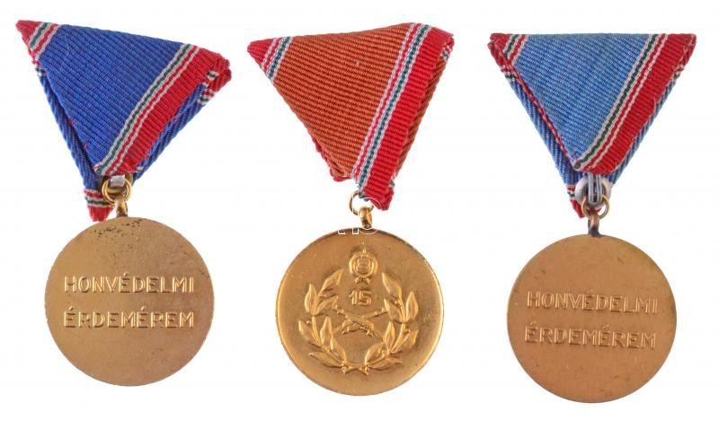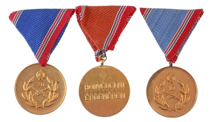 1983. "Szolgálati Érdemérem - Honvédelmi Érdemérem" 10, 15 és 20 év után, aranyozott Br kitüntetés mellszalagon (3xklf) T:2,2- NMK 657, 658, 659