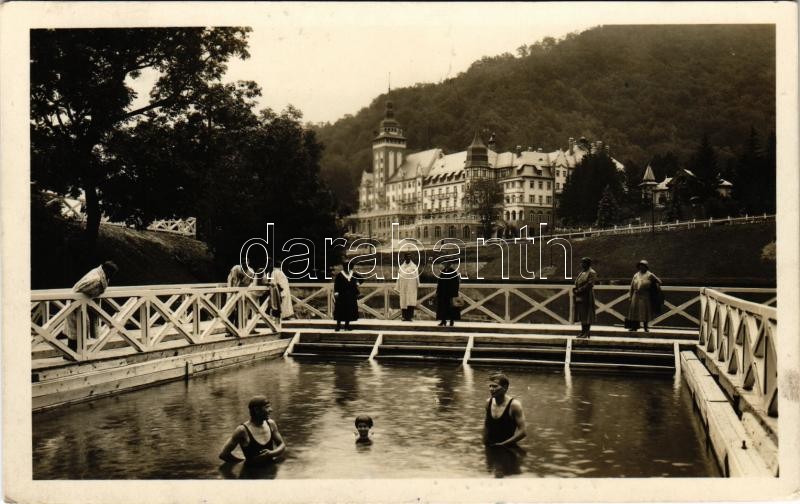 Leírás: 1933 Lillafüred (Miskolc), strandfürdő és Palota szálló. Márton Jenő felvétele 306. sz.
