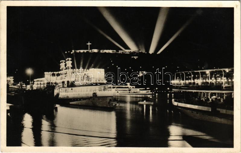 1938 Budapest, XXXIV. Nemzetközi Eucharisztikus Kongresszus, Dunai hajókörmenet este / 34th International Eucharistic Congress, boat procession at night
