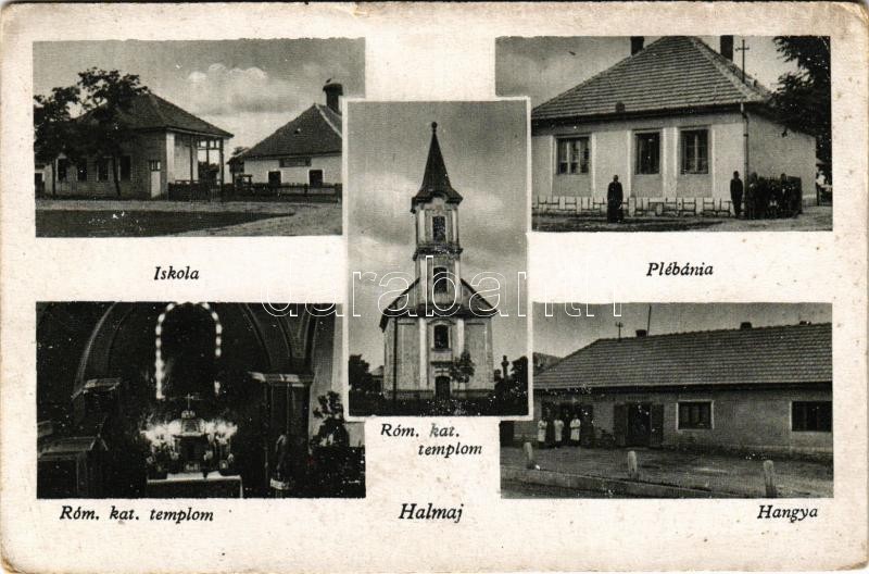 1951 Halmaj, Iskola, Plébánia, Római katolikus templom, belső, Hangya ... https://www.darabanth.com/hu/373-Gyorsarveres/373.0/Kepeslapok/Magyarorszag~1500004/1951-Halmaj-Iskola-Plebania-Romai-katolikus-templom-belso-Hangya-Szovetkezet-uzlete-es-s~II2182544