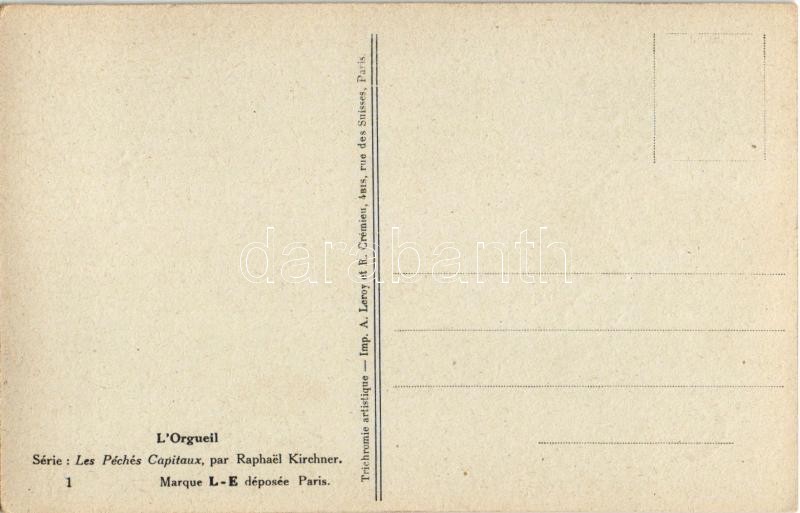 L'Orgueil. Serie Les Péchés Capitaux. Erotic nude lady art postcard. Imp. A. Leroy et R. Cremieu. Marque L-E déposée Paris 1. Trichromie artistique s: Raphael Kirchner