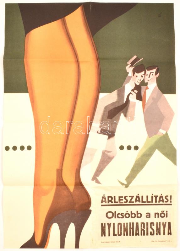 "Árleszállítás! Olcsóbb a női nylonharisnya" divatplakát, egykorú rára... https://www.darabanth.com/hu/373-Gyorsarveres/373.0/Mutargy-papirregiseg-egyeb/Plakat~500032/Arleszallitas-Olcsobb-a-noi-nylonharisnya-divatplakat-egykoru-raragasztott-cimkevel-~II2181484