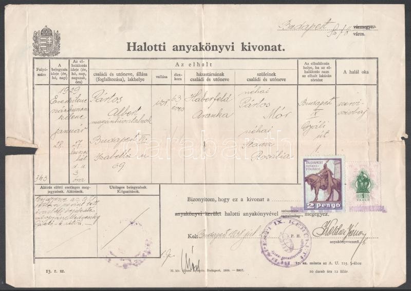 Mappányi különféle papírrégiség, közte levelezőlapok, esketési jegyzék, születési jegyzék, halotti anyakönyvi kivonat, búcsúlevél