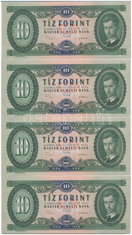1969. 10Ft (4x) 3db sorszámkövető és 1db egyugrásos sorszámkövető bank... https://www.darabanth.com/hu/375-Gyorsarveres/375.0/Numizmatika/Magyar-bankjegyek~2000007/1969-10Ft-4x-3db-sorszamkoveto-es-1db-egyugrasos-sorszamkoveto-bankjegy-nyomdai-papirrC3~II2199462